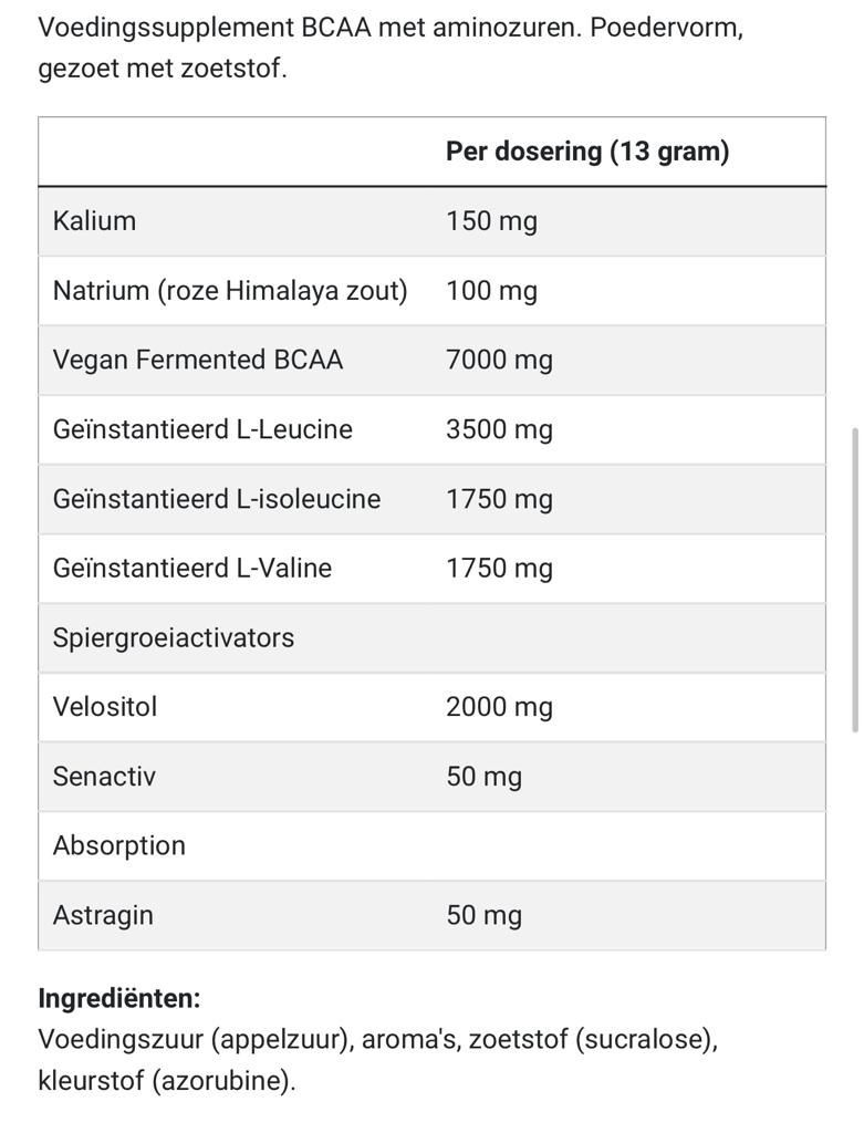 Illmatic BCAA's bevatten 7 gram vegan gefermenteerde BCAA's in een verhouding van 2:1:1. Illamtic BCAA's kunnen voor de training, tijdens de training en na de training worden geconsumeerd.