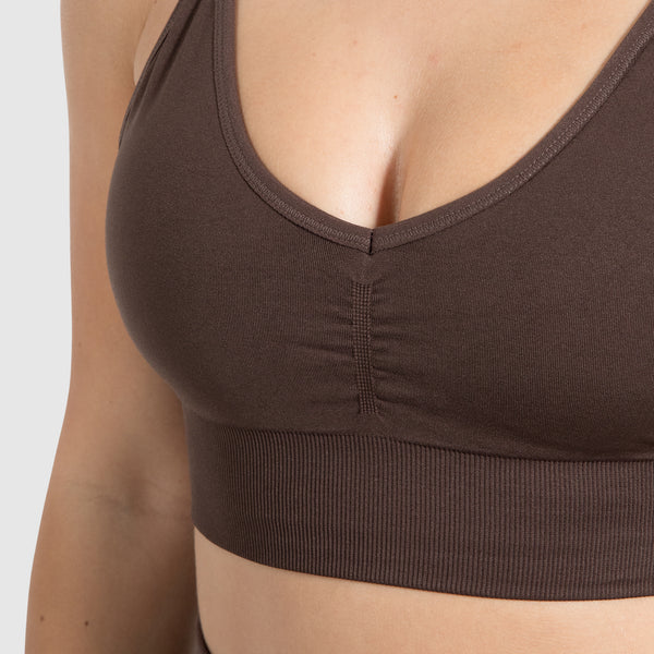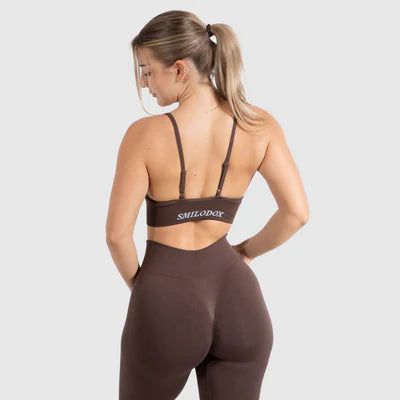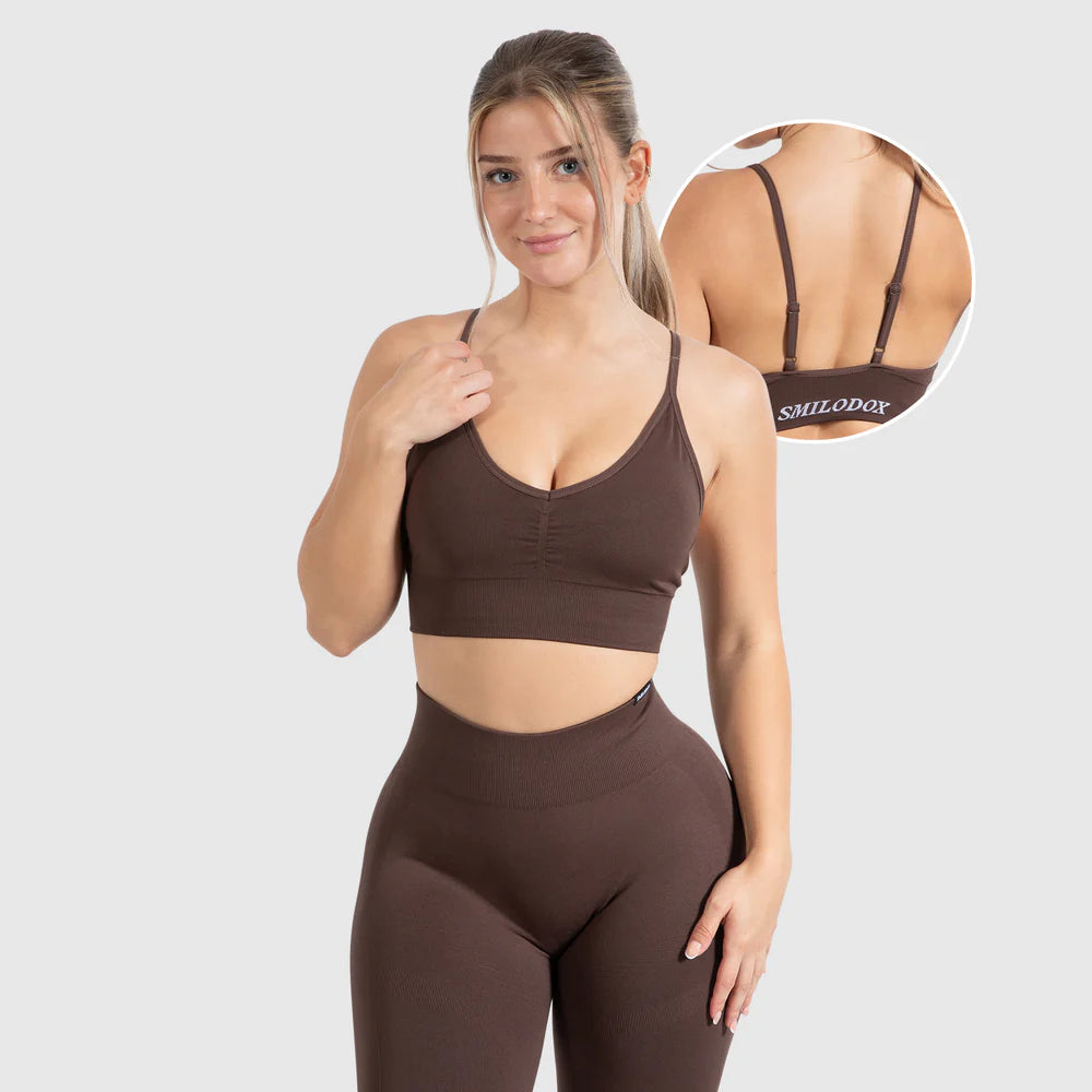 Discover our Smilodox sports bra with V-neck and scrunch seam! Made from soft and elastic material, it offers an optimal fit and high wearing comfort. The beautiful back neckline and adjustable straps ensure flexibility and perfect support. With removable cups and a woven Smilodox logo on the back of the waistband, this sports bra is ideal for your sporting activities and leisure time.