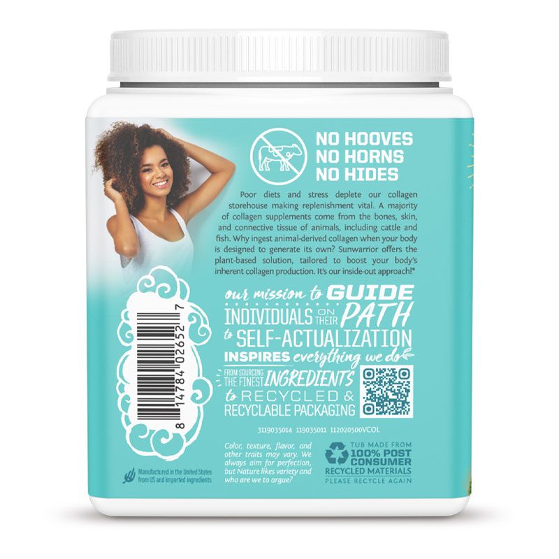 Poor diets and stress deplete our collagen storehouse making replenishment vital. A majority of collagen supplements come from the bones, skin, and connective tissue of animals, including cattle and fish. Why ingest animal-derived collagen when your body is designed to generate its own? Sunwarrior offers the plant-based solution. It's our inside-out approach.