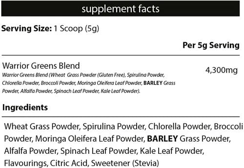 And you don’t have to compromise on quality. Warrior Greens contains spinach, kale, wheat grass, broccoli, spirulina, chlorella, alfalfa powder, barley grass and moringa leaf powder. This powerful blend of quality ingredients ensures you get everything you need in just one serving.
